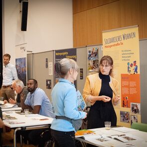 Lernen Sie aktuelle Projekte kennen: In einem kurzen Bühnen-Streiflicht stellen Initiativen Highlights ihrer laufenden oder geplanten Wohnprojekte vor. Anschließend können Sie an den Marktständen direkt mit den Gruppen ins Gespräch kommen, Fragen stellen und sich inspirieren lassen.