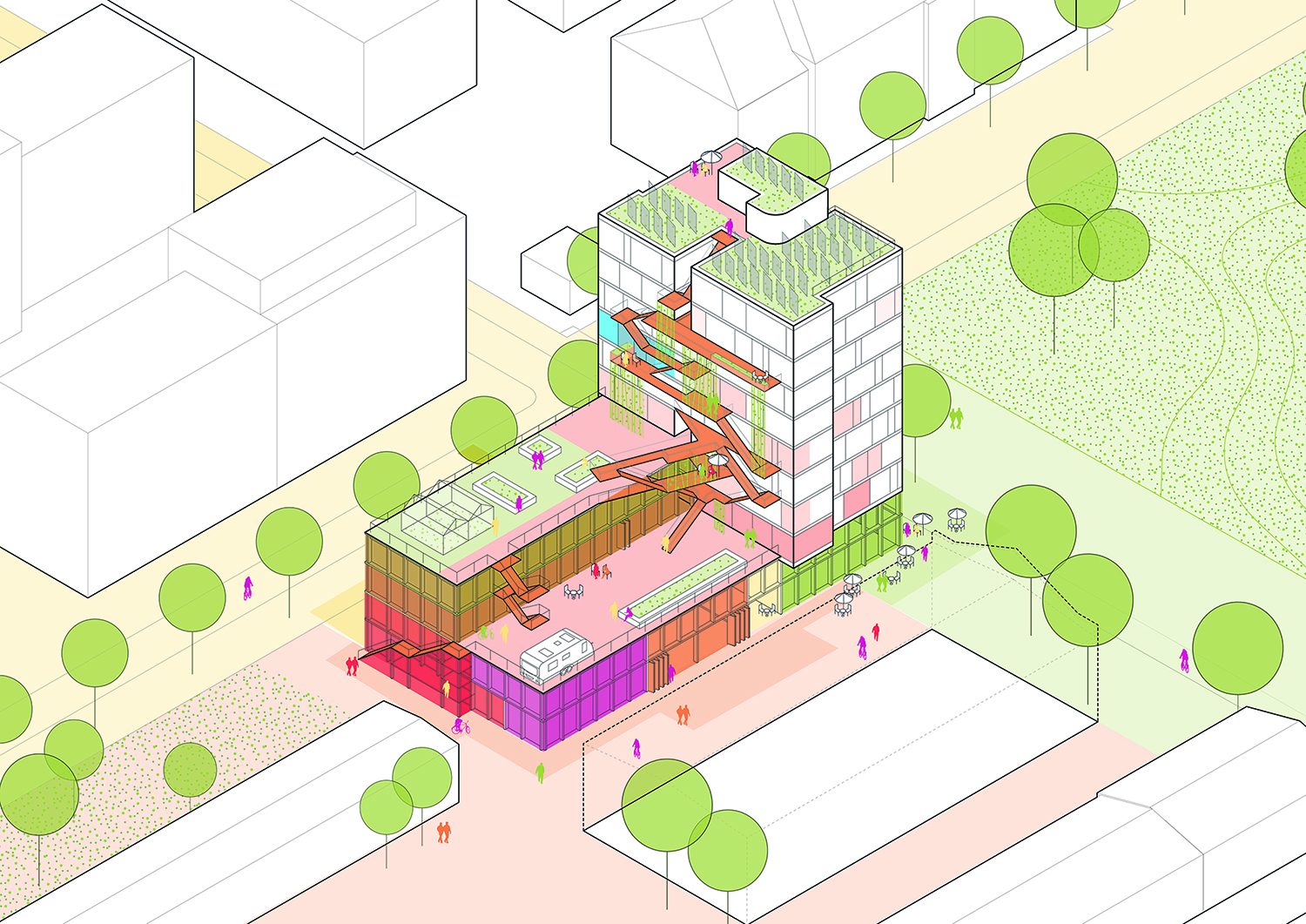 Die Genossenschaft „Das große kleine Haus eG“ verfolgt das Ziel, gemischt genutzte Gebäude in städtischer Umgebung zu bauen. Das aktuelle Projektvorhaben befindet sich im Münchner Stadtbezirk Neuhausen-Nymphenburg im sog. Labor des Kreativquartiers. Das Baufeld grenzt an die Heßstraße und den zukünftigen Kreativpark. Das große kleine Haus schafft Räume für eine bunte Mischung aus Wohnen und Arbeiten. Eine Besonderheit sind gemeinschaftlich genutzte Innen- und Außenräume, die die Einheiten des Hauses untereinander sowie mit dem Quartier verzahnen. Im Erdgeschoss sind Gewerberäume (u.a. Büro, Atelier, Café und eine Multihalle für vielfältige kreative, soziale und kulturelle Nutzungen geplant. Raum A hat eine lichte Raumhöhe von ca. 3,15 m (im Bereich der Unterzüge ca. 2,55 m). Raum B und C erhalten ein Galeriegeschoss. Im doppelgeschossigen Bereich ist eine Raumhöhe von ca. 5,60 m vorgesehen. Mietgliedschaft 1.000 EUR zzgl. Gebühr; Genossenschaftsanteile; vsl. 2.000 EUR/qm Mtl. Miete vsl. 17,85 EUR inkl. MwSt. zzgl. Nebenkosten Ein begrenztes Angebot an Tiefgaragenstellplätzen ist gegen Zuzahlung vorhanden. Die Vergabe und Einlage soll zeitnah erfolgen. |