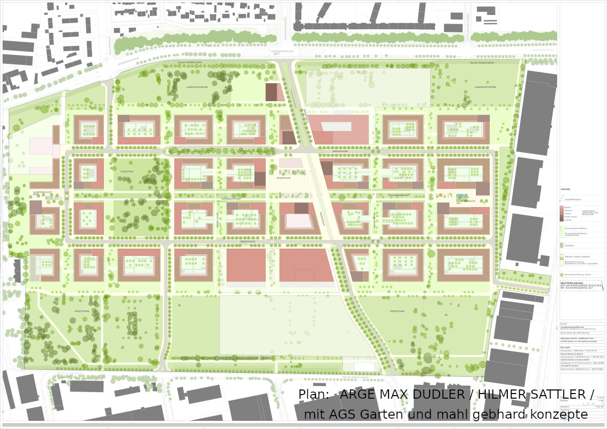 2013/2014 fand ein städtebaulicher und landschaftsplanerischer Ideenwettbewerb für das Gelände der ehemaligen Bayernkaserne statt. Der erste Preisträger, die Arbeitsgemeinschaft Max Dudler, Hilmer & Sattler und Albrecht und Adelheid Schönborn Gartenarchitektin sowie Mahl Gebhardt Konzepte wurde beauftragt, einen Masterplan auf Grundlage des Wettbewerbsergebnisses zu erarbeiten.