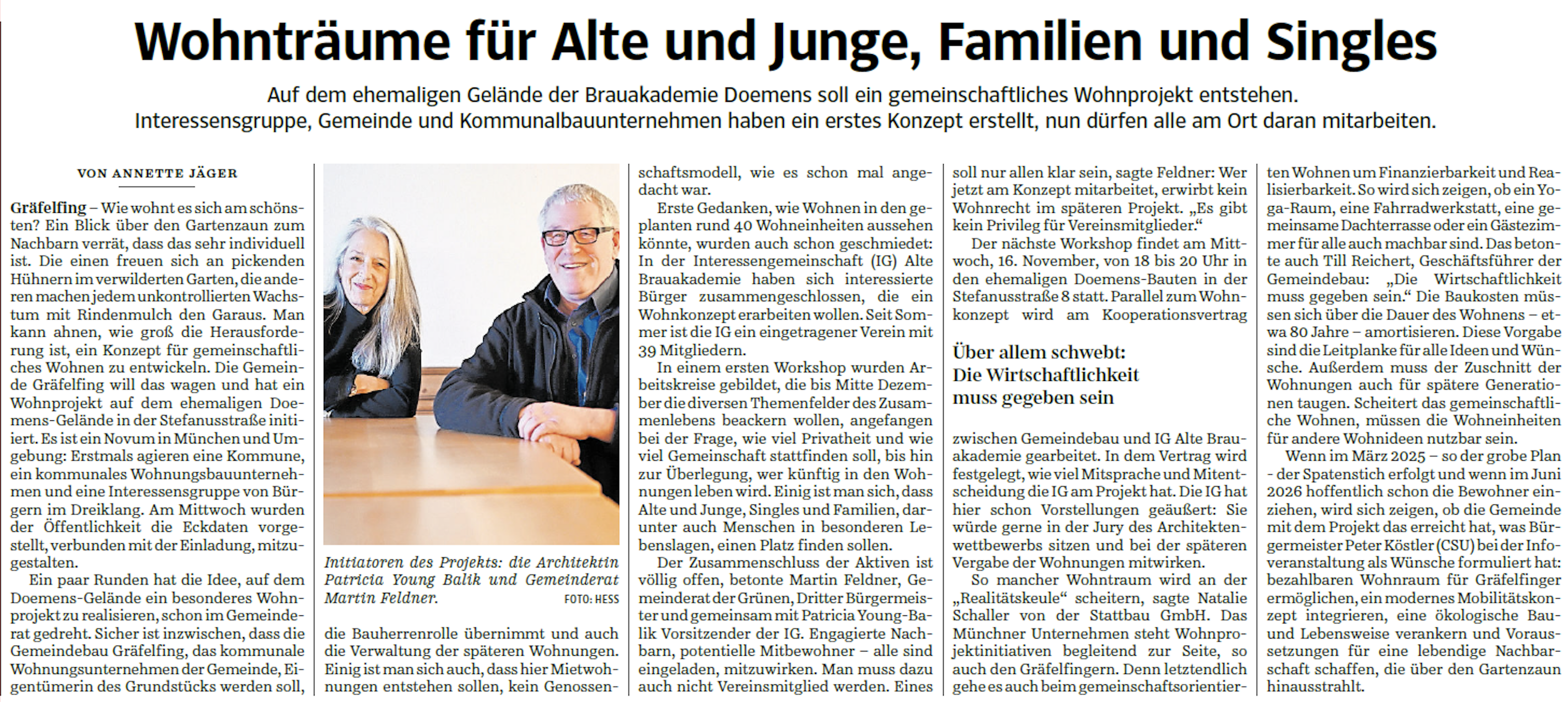 Interessensgruppe, Gemeinde und Kommunalbauunternehmen haben ein erstes Konzept erstellt. Nun dürfen alle am Ort daran mitarbeiten. SZ-Artikel vom 14.10.2022